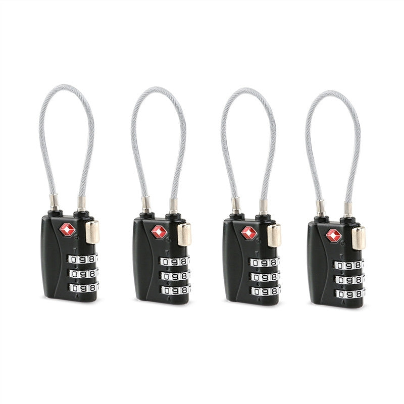 4pcs Portable TSA Approved Security Cable Luggage Lock 3-Digit Combination Password Lock Padlock