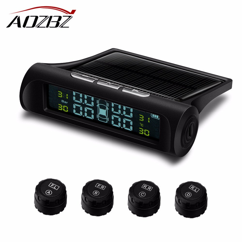 AOZBZ Car TPMS Tire Pressure Monitoring System Solar Power charging Digital LCD Display Auto Security Alarm Systems 4 Sensors