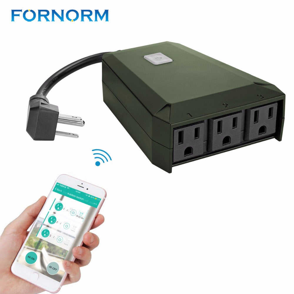 FORNORM WiFi Smart Plug 1 to 3 Extension Socket Outdoor Multi-function Triple Wall Power Outlet Waterproof Timer For iOS Android