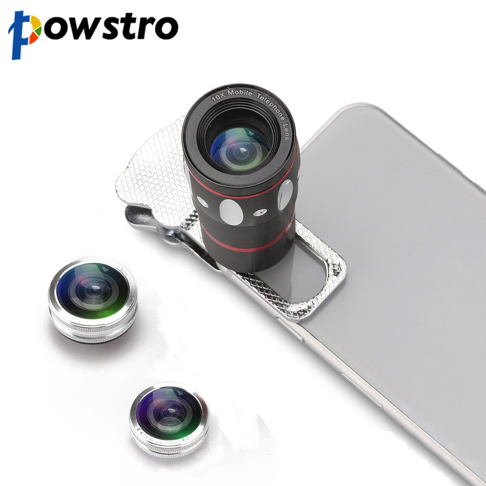 Powstro 10x Zoom Telephoto With 180 Degree Fish Eye Wide Angle Clip 4 in 1 on Cellphone Lens Kits For iPhone 6S 6 Samsung HTC