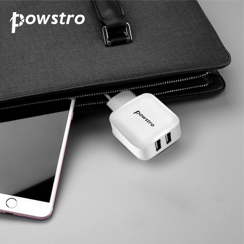 POWSTRO Dual USB EU Plug Wall Charger Universal Travel Adapter Smart Fast Charging for IPhone Android Phone IPad