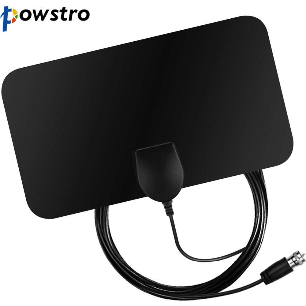 Powstro HDTV 1080P Digital TV Antenna 25 Miles Range Indoor Flat TV Antenna no amplifier with Coaxial Euro Adapter