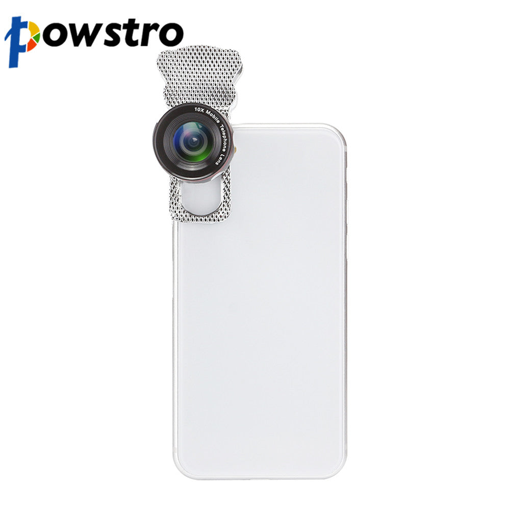 Powstro Universal 4 in 1 10X Zoom telephoto Lens Micro Clip Clamp Camera Lens Fisheye Lens For Samsung iPhone 7 6S Plus