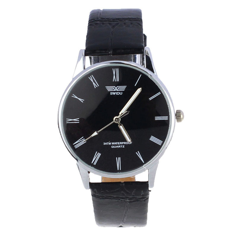 Classic Female Roman Number Quartz Electronic Leather Wrist Watch Black