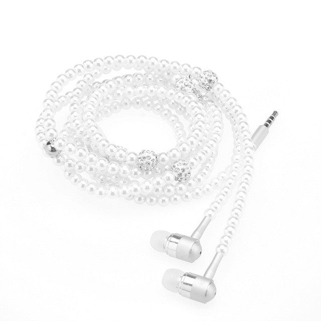 FORNORM Rhinestone Jewelry Pearl Necklace Earphones Design 3D Surround Sound In-ear Handsfree Earbuds With HD Microphone Newest