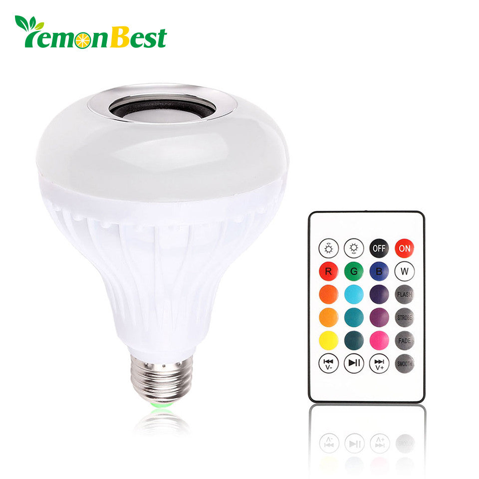 LemonBest AC100-240V Bluetooth 3.0 Music Audio RGB Speaker Light RGB 12W E27 LED Bulb Lamp for iOS Android with Remote Control