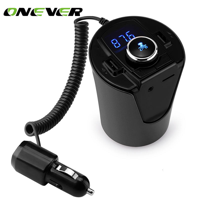 Onever Car Audio mp3 player FM transmitter wireless modulator Car Bluetooth Handsfree With Charger 2.1A Dual USB TF Slot black