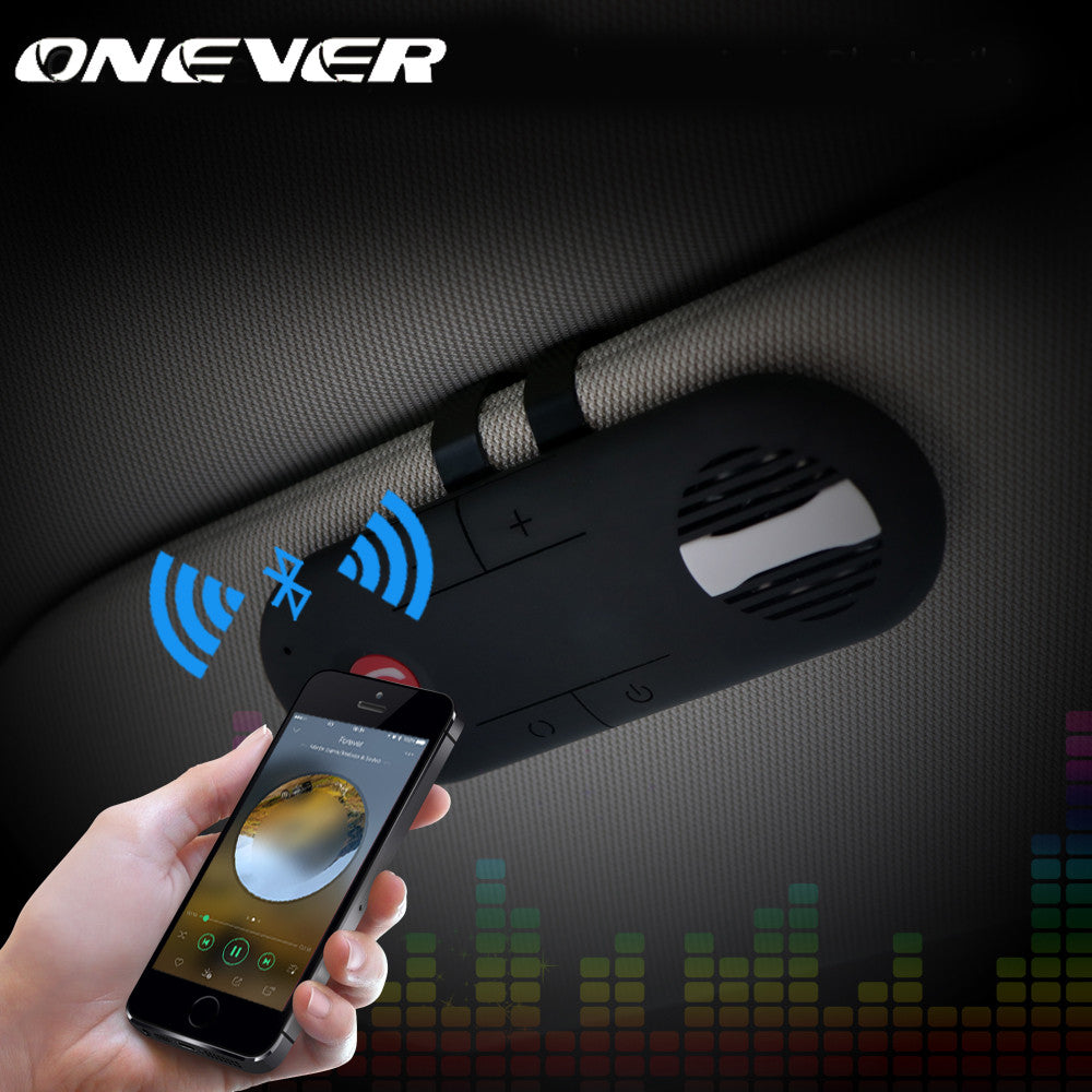 Onever Wireless Car Bluetooth Speakerphone Hands-free Car Kit Music Player Clip On Sun Visor Portable Car Audio with Car Charger