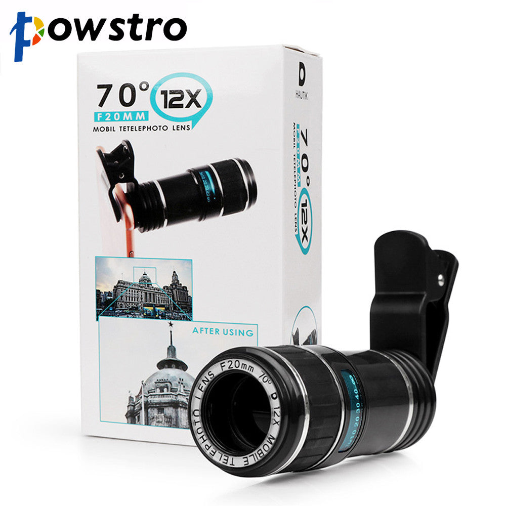 POWSTRO 12X Zoom Mobile Phone Lens Telescope Camera Lens Clip-on for iPhone 7 6 6S plus Samsung S7 S6 edge Smartphones