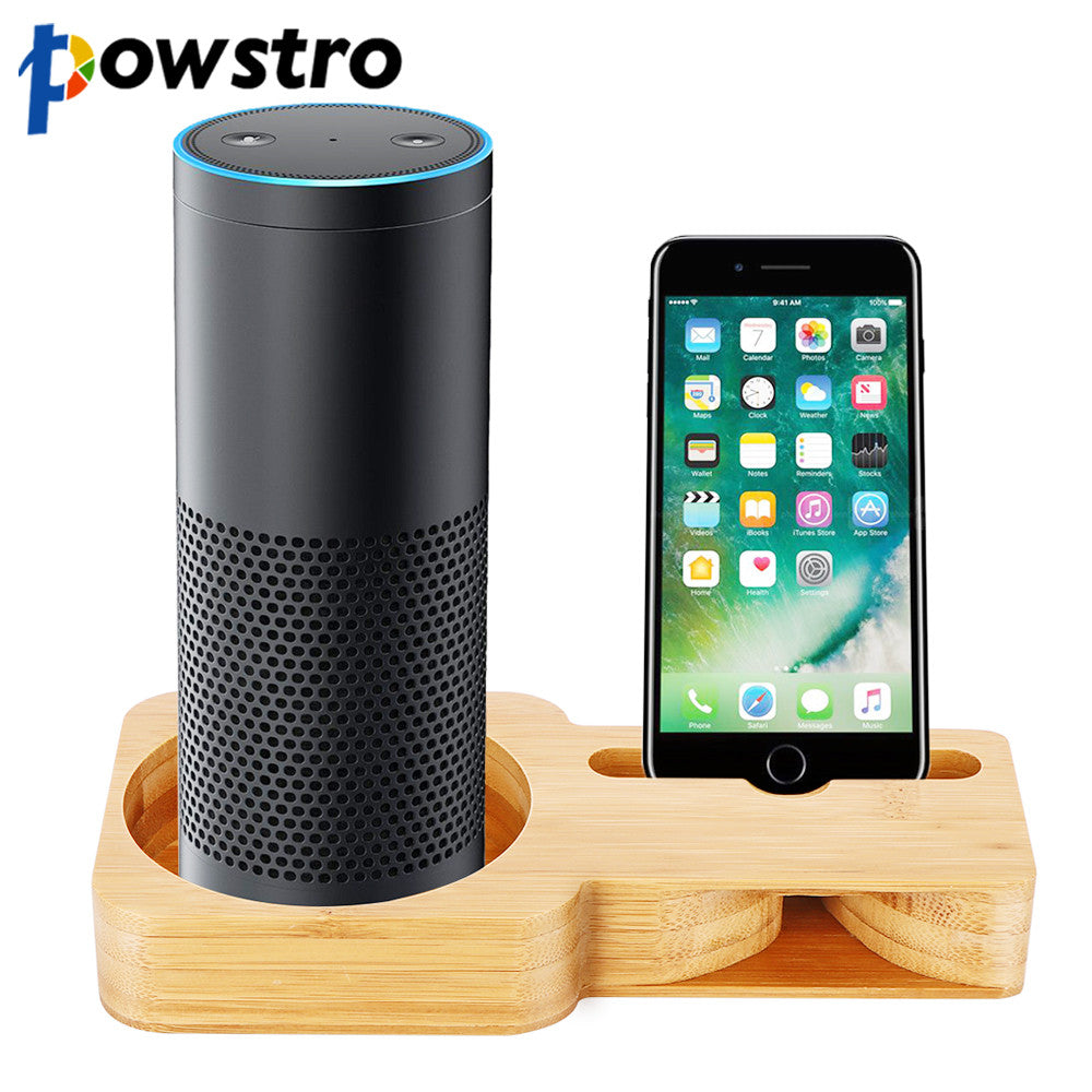 Powstro Bamboo Wood Desk Holder For Smart Mobile Phone Charging Dock Speaker Stand For Echo Dot Phone Stand Holder For iPhone