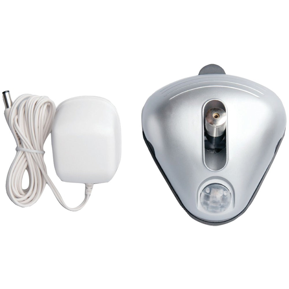 Motion sensor automatically activates laser when vehicle enters the garage