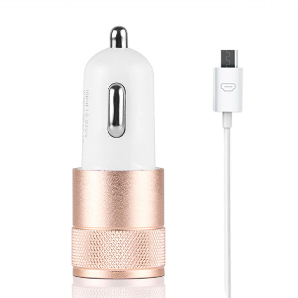Aluminium Dual USB Car Charger 12-24V 2.1A 1A Vehicle Charger With Android Cable for iPhone 7 7plus 6 6S ipad Samsung HTC Tablet