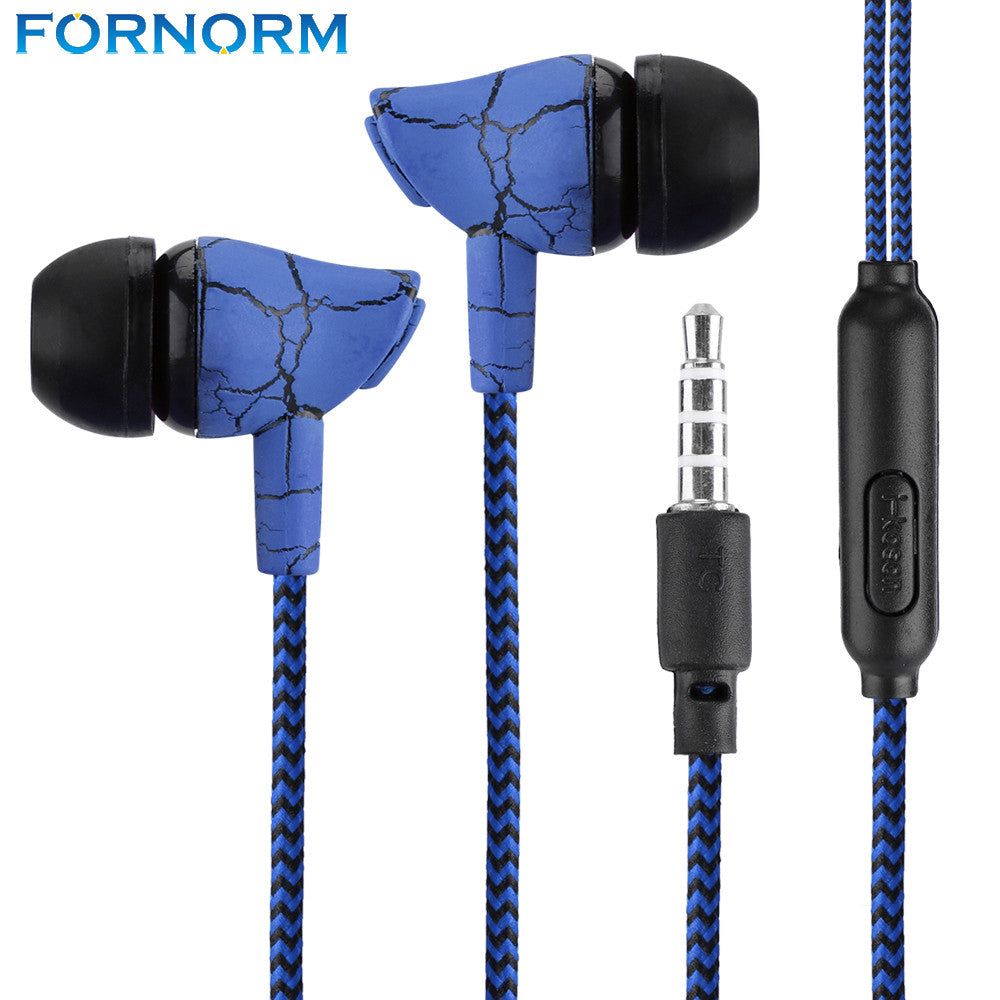 FORNORM 3.5mm Wired Earphones In Ear Earphone Stereo Bass Music Earpieces with Microphone Cloth Rope For Cellphone MP3 MP4 Ect