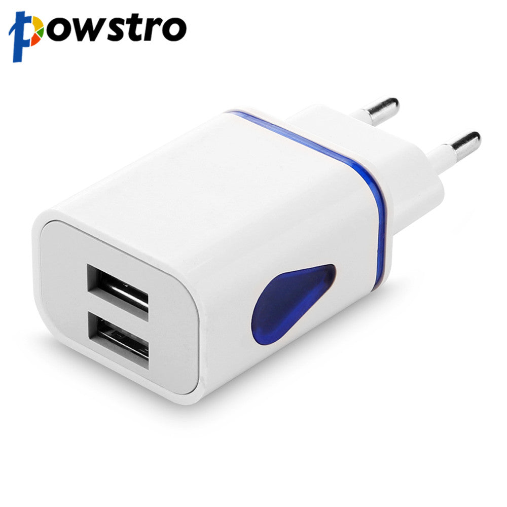 Powstro LED Light Micro USB Charger EU Plug 2.1A 2 Ports Fast Charging Wall Power Adapter For iPhone 8 7s Smasung Accessories