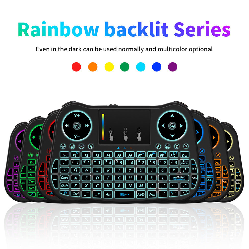 2.4GHz Colorful Backlit Mini Wireless Keyboard with Mouse Touchpad Rechargeable Combos for PC/Desktop/Nar TV/HTPC/Large Screen TV/Smart TV/Hard Disk Player/Web Player/X-BOX