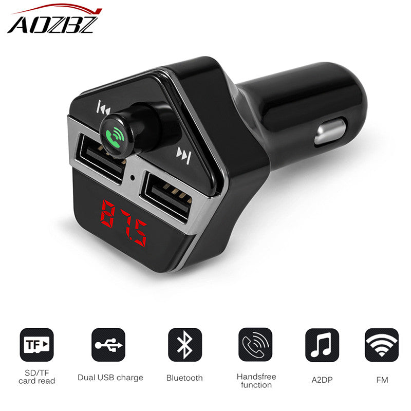 AOZBZ Bluetooth Car Kit Music Player FM Transmitter Hands-free Modulator Voice Prompt with 3.1A Dual USB Charger TF Slot 12-24V
