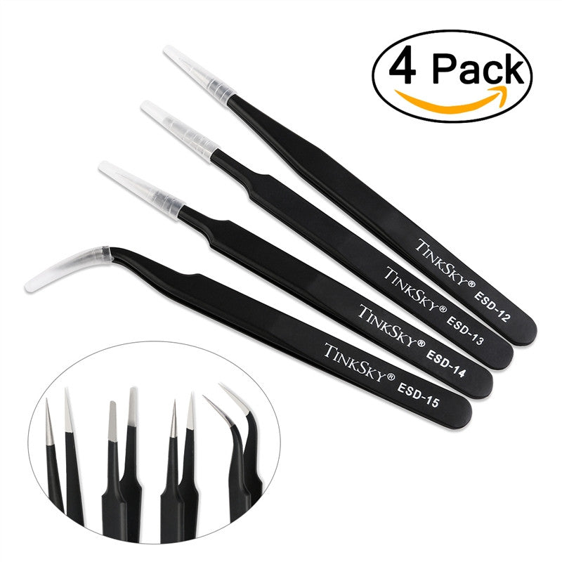 TINKSKY 4pcs Professional Anti-Static Stainless Steel Tweezers Maintenance Tools Kit Set