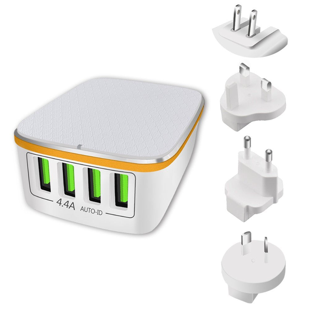 Travel Charger with 4 USB Port for EU, USA, Asias & Australia