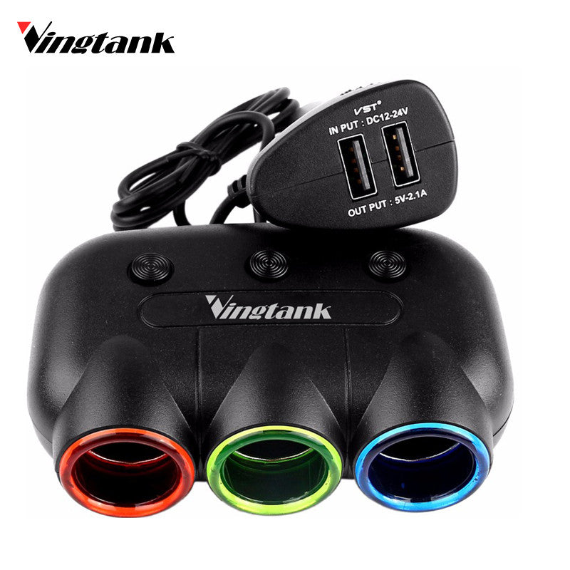 Vingtank 1 to 3 Car Cigarette Lighter Coupler Splitter Socket with Dual USB 5V 2.1A Car Charger Electronic Cigarette lighter usb